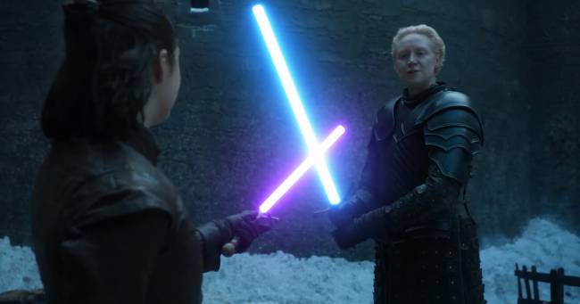 Découvrez la dernière édition de la scène d’entrainement entre Brienne de Torth et Arya Stark lors de l’épisode 4 (The Spoils of War – Au-Delà du Mur) de la septième saison de Game of Thrones, où les épées Féale & Aiguilles sont remplacées par des sabres laser tous droits venus d’une galaxie lointaine, très lointaine… […] Plus